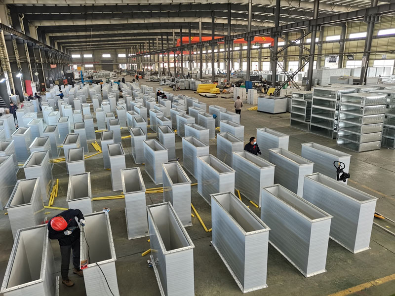 配有八條生產自動線、激光8臺,角鐵法蘭下料機16臺,自動焊6臺,方形風管日產1.2萬平方,消防排煙、空調耐火復合風管日常2000平方,圓形風管日產300~1000米為您保障工期